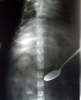 John suffered further traumatic brain injury from this incident, this time to the temporal and frontal lobes on the other side. Whereas after the first injury John could talk and reason to some degree, after second he could not. His demeanor was that of being in a awakened vegetative state. John also suffered damage to his motor cortex and was paralyzed from the waist down. More interestingly though (and the point of this story) is that the damage to John’s frontal lobes resulted in KBS. In essence, John became an eating machine. Without consciousness John would spend every waking second trying to eat something, whatever came within his grasp. He would constantly pick at his clothes until he could rip off chunks and eat them. John’s physician showed me an old X-ray of John’s stomach which was filled with cloth, a couple of forks, toys, anything he could fit in his mouth.