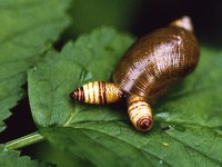 Such a relationship between parasites and insects is not unusual and there are many other examples in the animal kingdom. For instance a similar example involves crickets that are infected by nemotodes (roundworms) that cause them to jump into water facilitating the nematode lifecycle (Thomas et al., 2003). Lewis (1974) describes the life cycle of Leucochloridium helminthes (worms), which infect terrestrial mollusks (snails). The worms infect the snails and form broodsacs in the snail’s tentacles. The tentacles become striated, swell, and pulsate mimicking something like a maggot – a favorite food for birds. The worm also changes the snail’s behavior so that it moves to an exposed place. Birds are attracted to the maggot-like tentacles and bite them off the snails. The worm larvae are then excreted by the bird ready to infect another snail. The snails do not necessarily die, the tentacles can regenerate, and more broodsacs can be formed.* Other snails infected with helminthes may instead be castrated by the broodsac that form inside the snail.